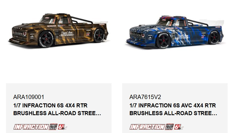 - 1/7 INFRACTION 6S BLX V2 ALL-ROAD TRUCK RTR-ARA7615V2